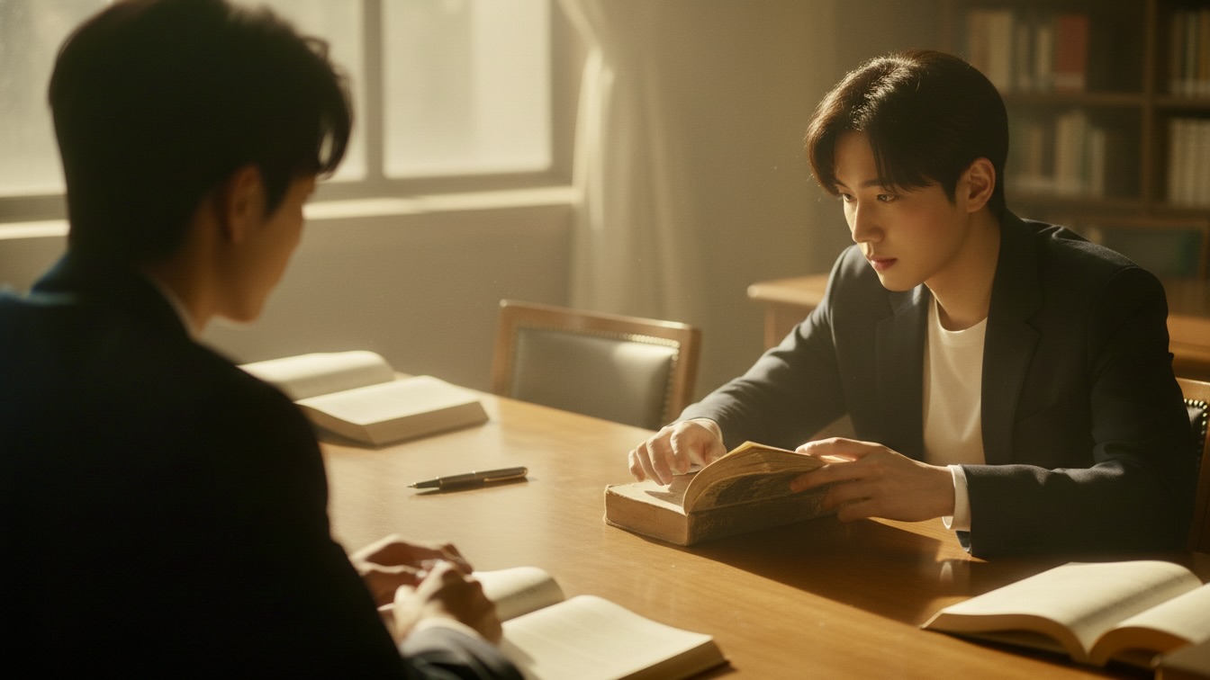 A brushed hand, a burning blush, and the quiet weight of unspoken words collide during a study session, forcing one boy to confront the raw vulnerability of his secret letters.
