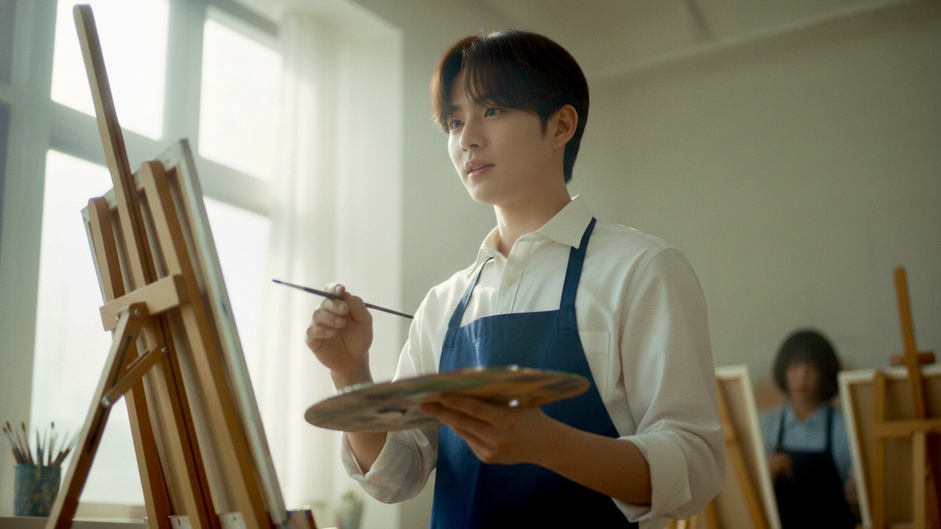 “Perfect!” Jordan exclaimed, undeterred. “No bad habits then. You can watch Noah. He makes everything look so easy. Like he was born with a paintbrush in his hand. Or maybe a chisel. Guy’s got serious talent.” He glanced over at Noah, who was now demonstrating a brushstroke to a small cluster of students, his movements precise and confident.