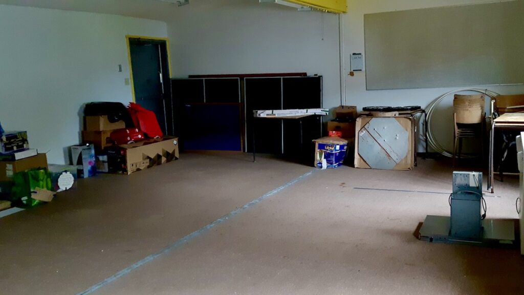 - Obsolete Functionality: Having been superseded by the newer addition to the main recreation hall, the building’s original function as a games or communal space has ceased entirely. Its current configuration, dominated by haphazard storage, offers no structured programming or opportunities for community engagement.