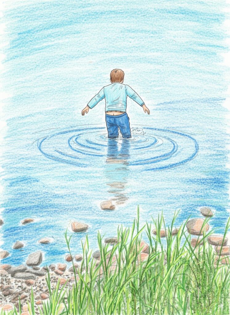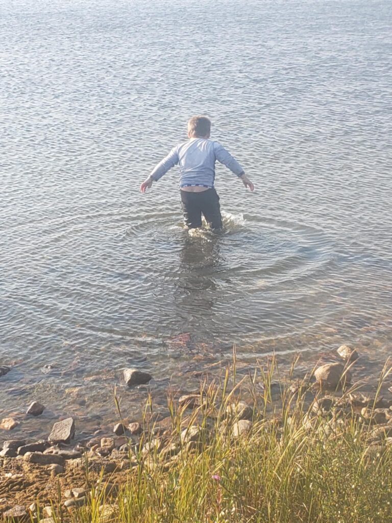 Carter takes a plunge this summer in a pond. This was a fun memory.